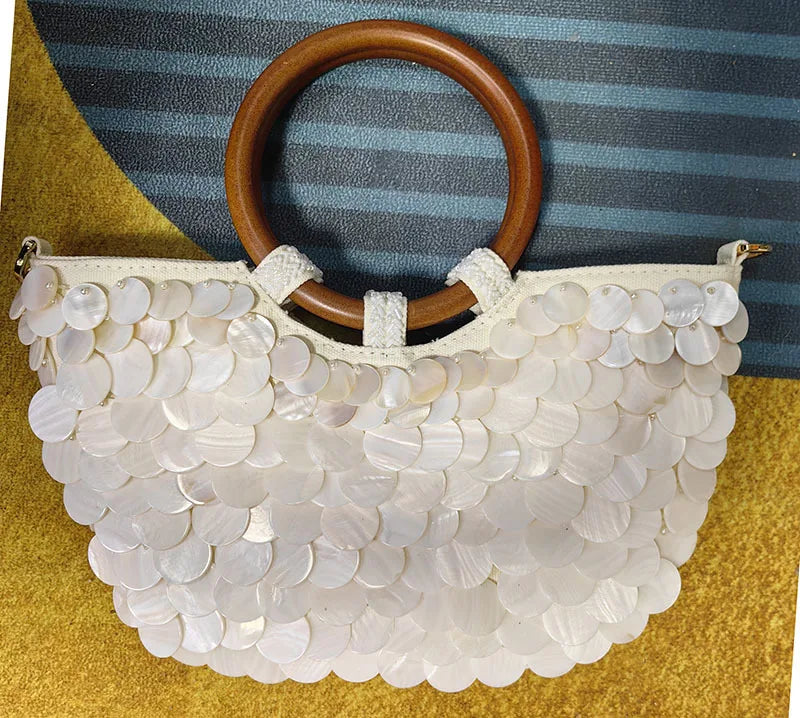 Make a dazzling statement across all seasons with our NEW Wood Top-Handle White Crystal Clutch Bag! This high-quality women's wedding hand woven handbag is a truly fashionable accessory.