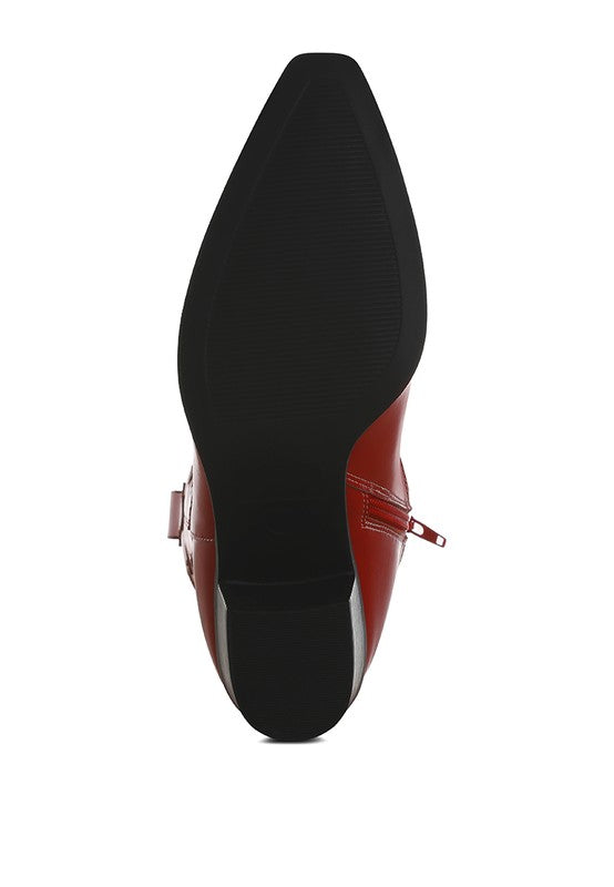 These patchwork cowboy boots with pull tabs are your new must-haves! Featuring a stacked block heel and a convenient side zipper, these faux leather calf boots bring a fresh twist to any look. Perfect for pairing with an all-black outfit or slipping under bootcut jeans, they're the statement piece your wardrobe needs!