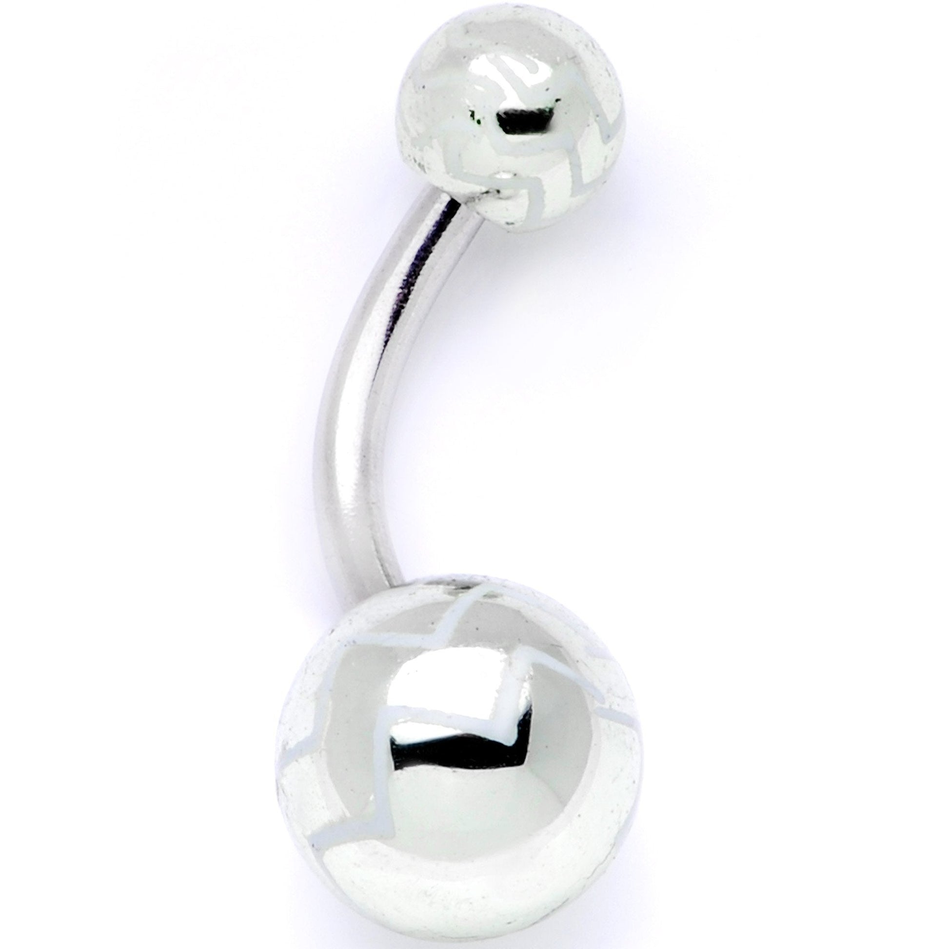 If you don't feel like the life of the party until you are fully decked out in beautiful body jewelry then this set of four 14 gauge navel rings is just what you need! Made with 7/16" durable 316L surgical grade stainless steel curved barbells, this navel jewelry features ball ends in a variety of colors with zig zag patterns, including black, silver tone, purple, and blue. These belly rings are sold as a set of four!Specifications