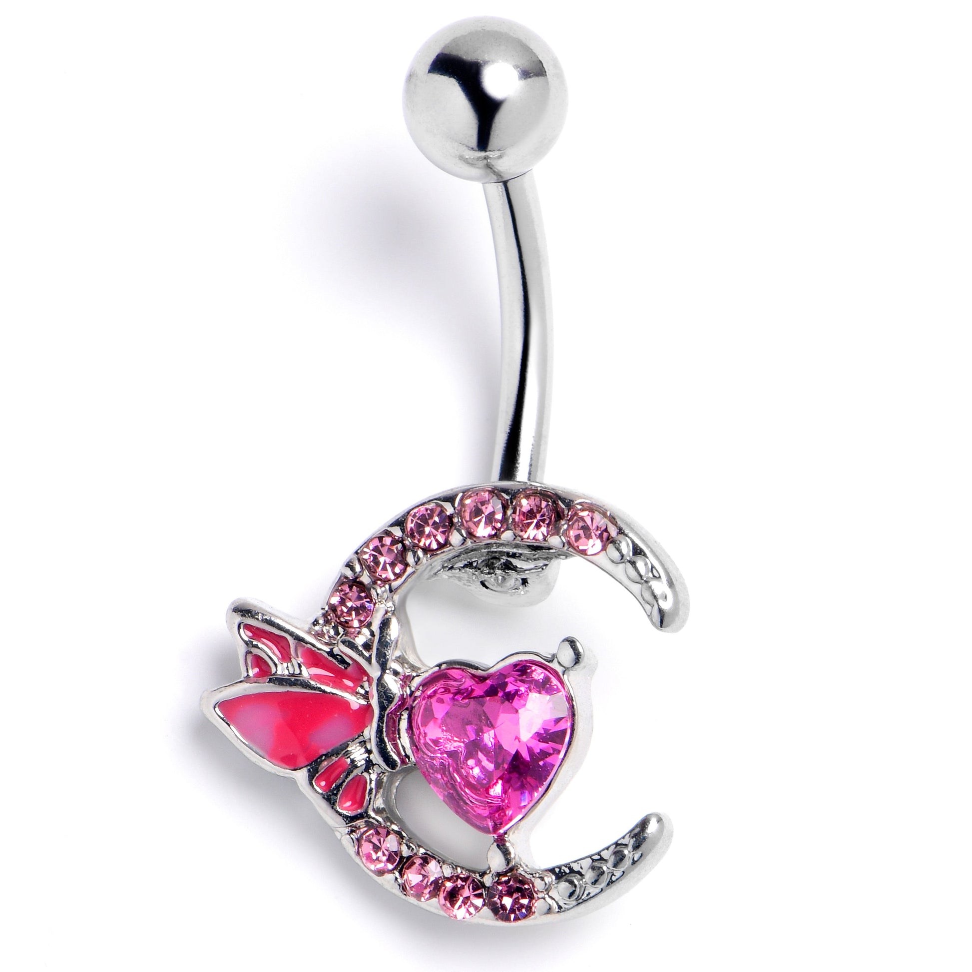 Pink Gem Butterfly Moon Heart Belly Ring