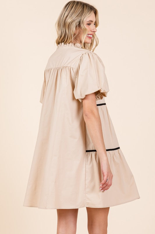 Piping Detailed Babydoll Mini Dress