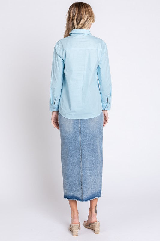 plus size, curvy, rhinestone, embellished, poplin, solid color, woven, shirt, blouse, top, button-up, collar neck, long sleeve, fancy, glam, glamourous, trendy, stylish, fashionable, classy, casual, daily wear, everyday wear, night out, party outfit, all season, transitional, spring, summer, fall, winter, ss, fw, women's clothing, women's apparel, women's wear