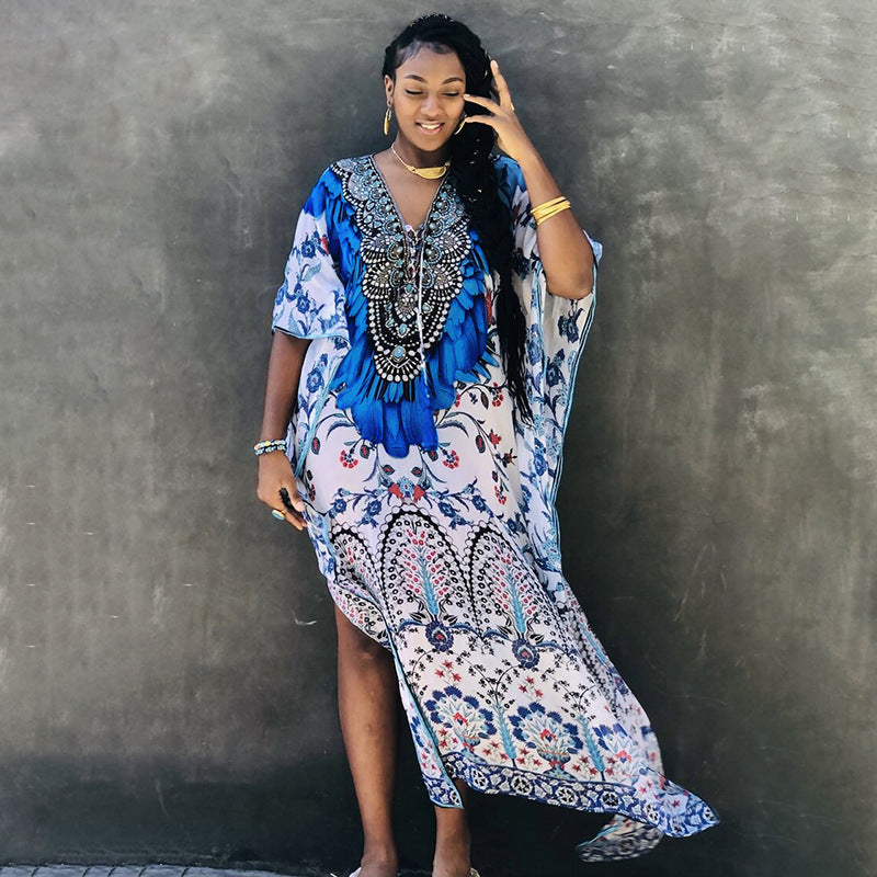Rope Positioning Maxi Dress Loose Robe Seaside Vacation Beach Dress Bikini Swimsuit Blouse Women