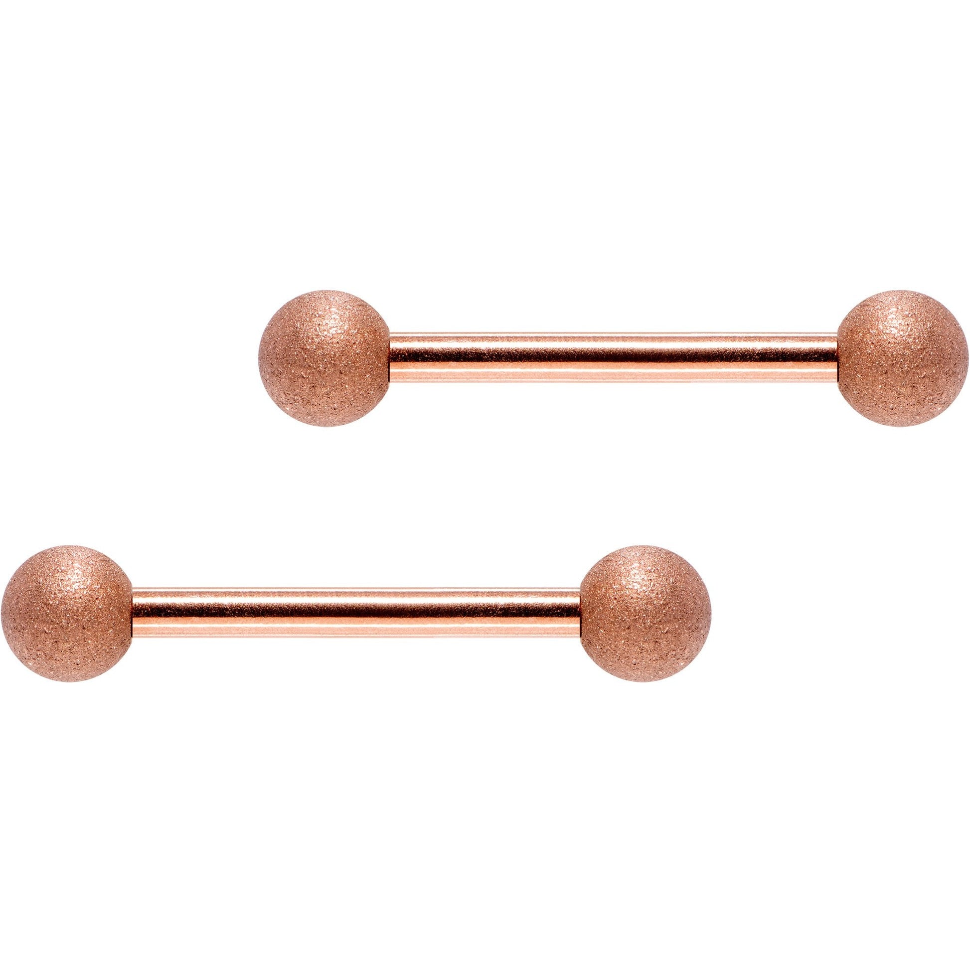 Rose Gold Color PVD Sandblasted Barbell Nipple Ring Set