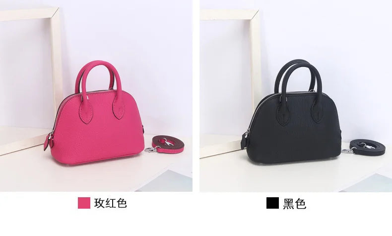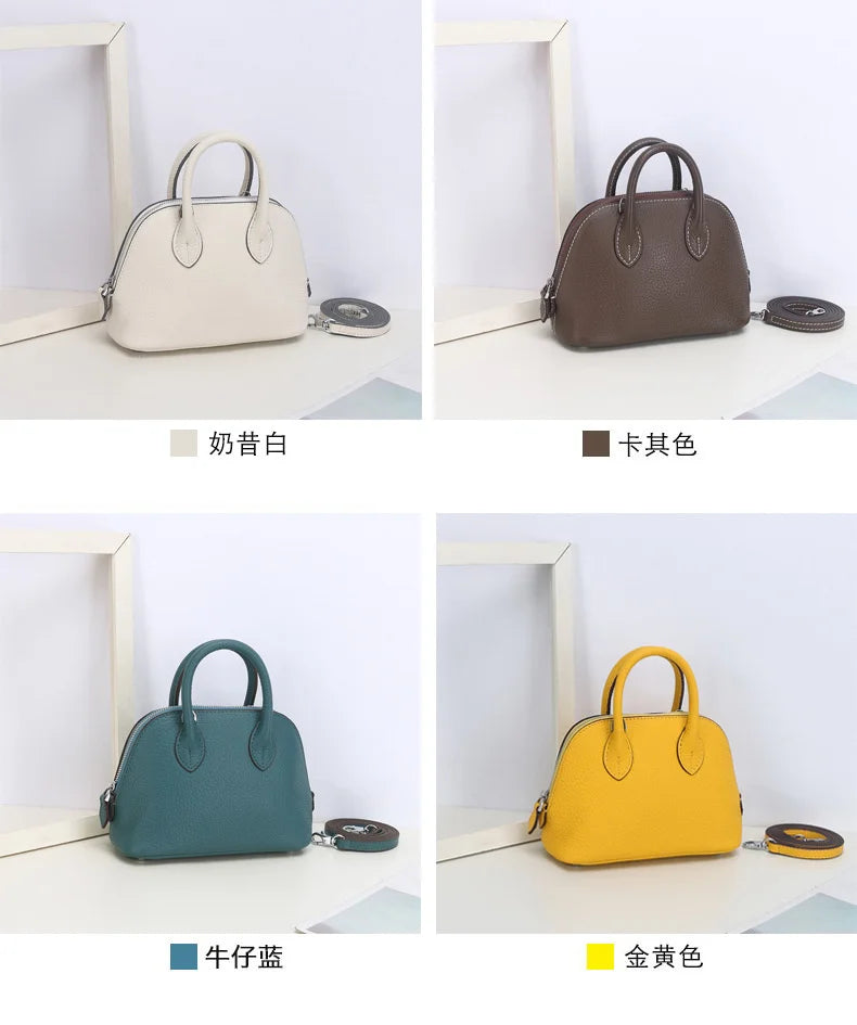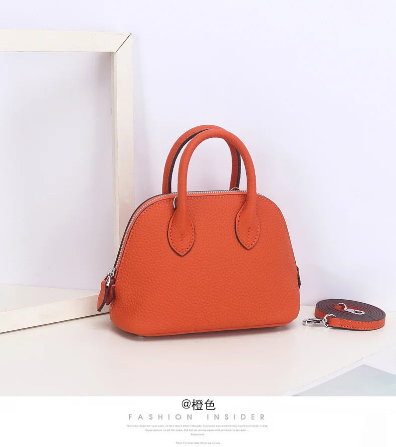 Discover timeless elegance with our Shell Bag Women's Messenger Bag! This simple cow leather shoulder bag functions as a fashionable ladies classic handbag and a convenient small mobile phone crossbody bag.