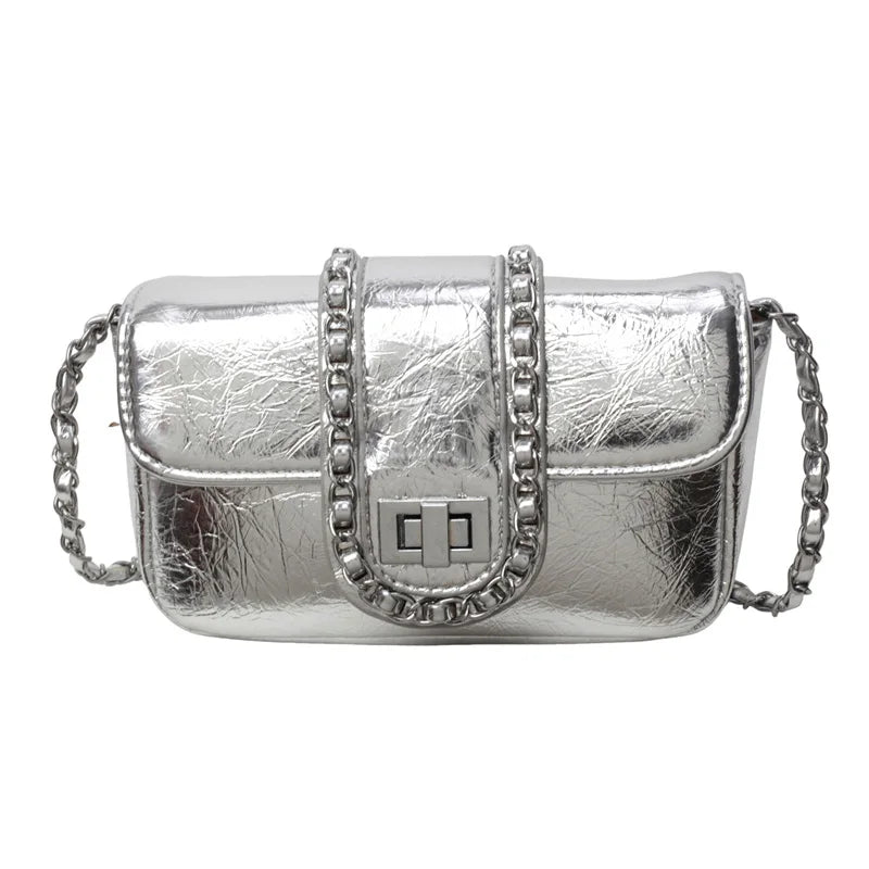 Make a dazzling statement with our Silvery Luxury Handbags & Purse for Women. This elegant PU leather flip bag features a sophisticated chain design and a radiant silvery hue, making it a fashionable messenger shoulder bag and a chic female crossbody bag.