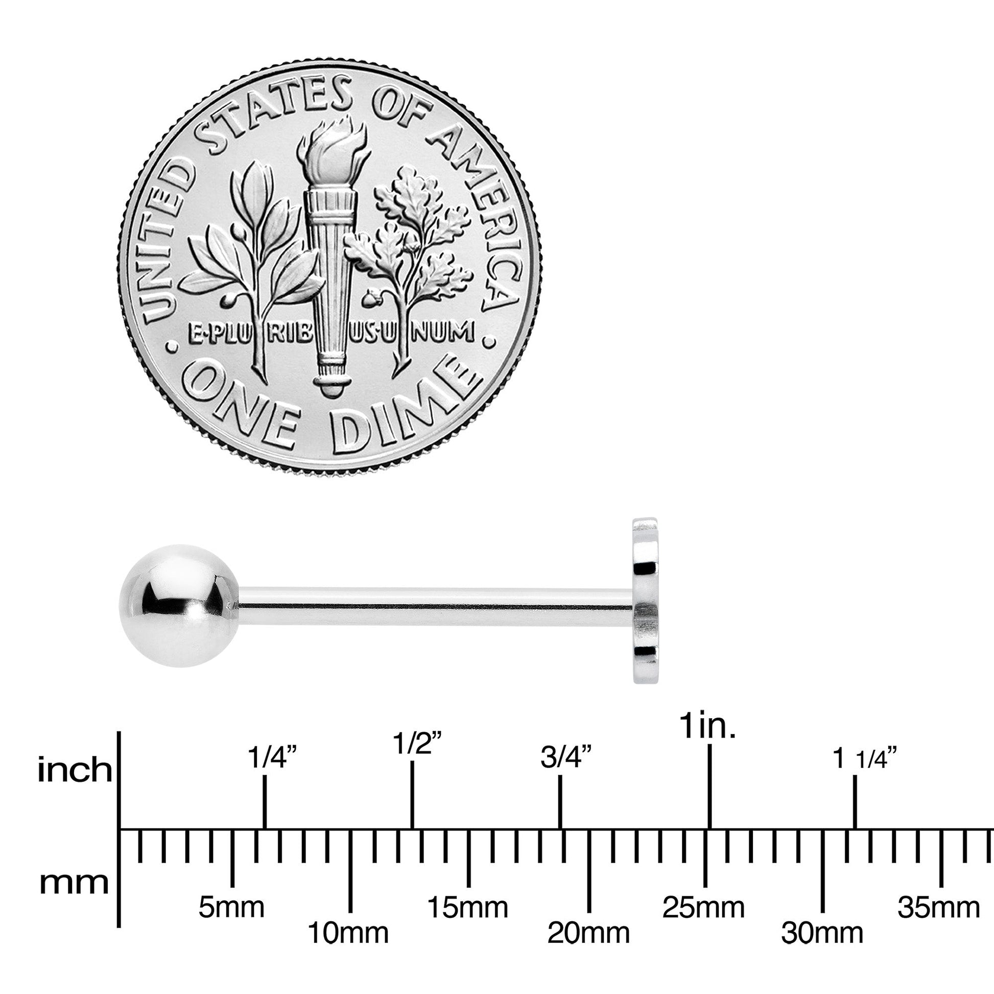 14 Gauge (1.6mm), 5/8" (16mm), 316L Surgical Grade Stainless Steel Straight Barbell, 6mm Bottom Ball End
