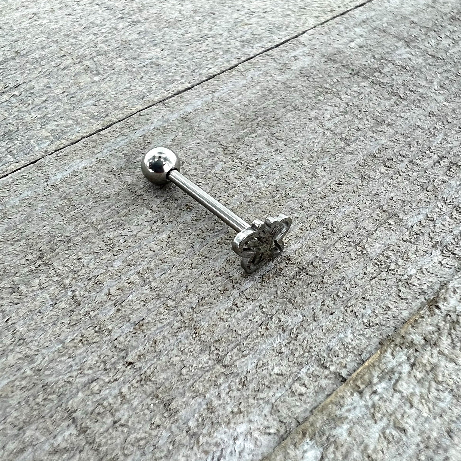 This 14 gauge tongue piercing ring isn't just a beauty, it's a beautiful butterfly! It's made with a 5/8" durable 316L surgical grade stainless steel straight barbell with a 6mm bottom ball end. The top end features an elegantly simple butterfly charm with openwork wings for an appropriately airy look. Let your words float as free as you feel when you're rocking this simply elegant butterfly tongue jewelry.Specifications