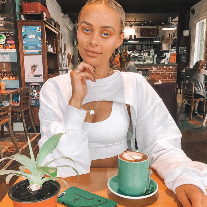 Spring Summer Women Clothing Street Shooting Irregular Asymmetric Solid Color Long Sleeved Sweatshirt