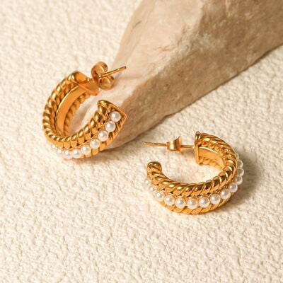 Stainless Steel Pearl C-Hoop Earrings