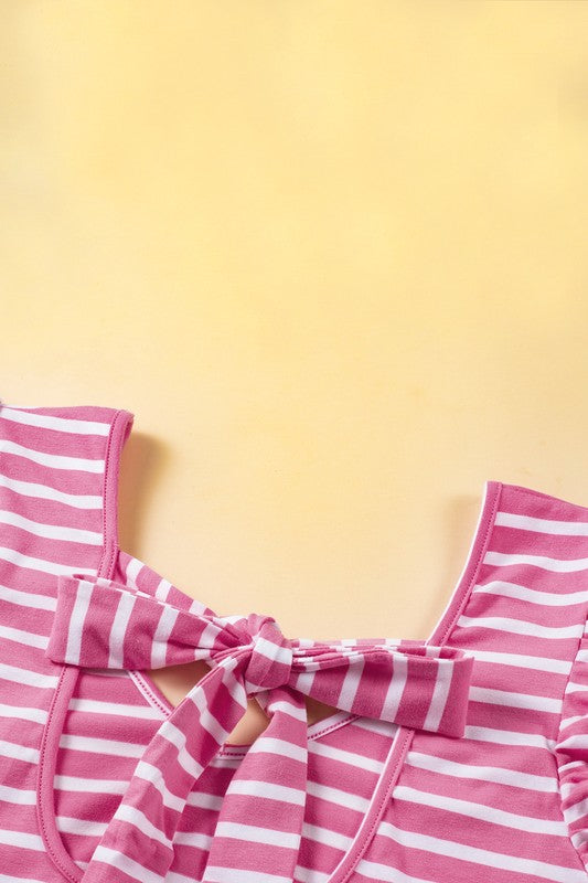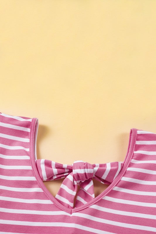 Stripe Butterfly Sleeve V Neck Knot Back T Shirt