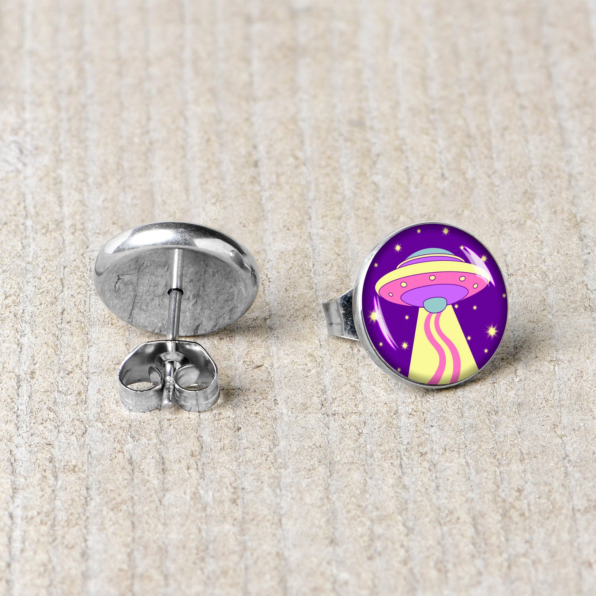 Hypoallergenic jewelry for sensitive skin.Style Space Invasion UFO Stud Earrings