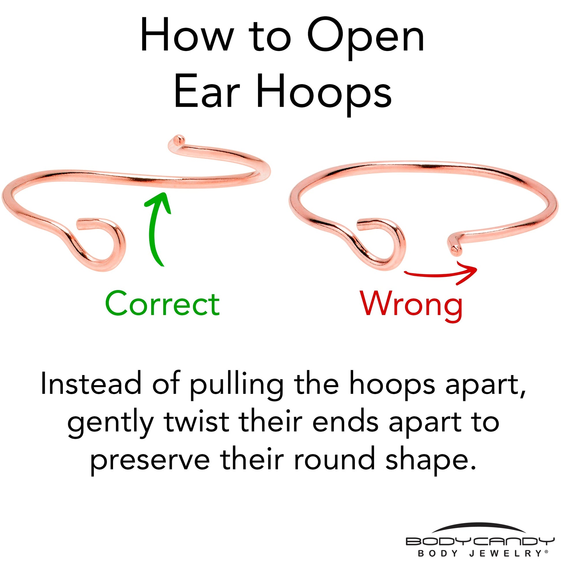 To help the hoop earrings maintain their shape gently twist the ends away from each other. Do Not Pull Apart.