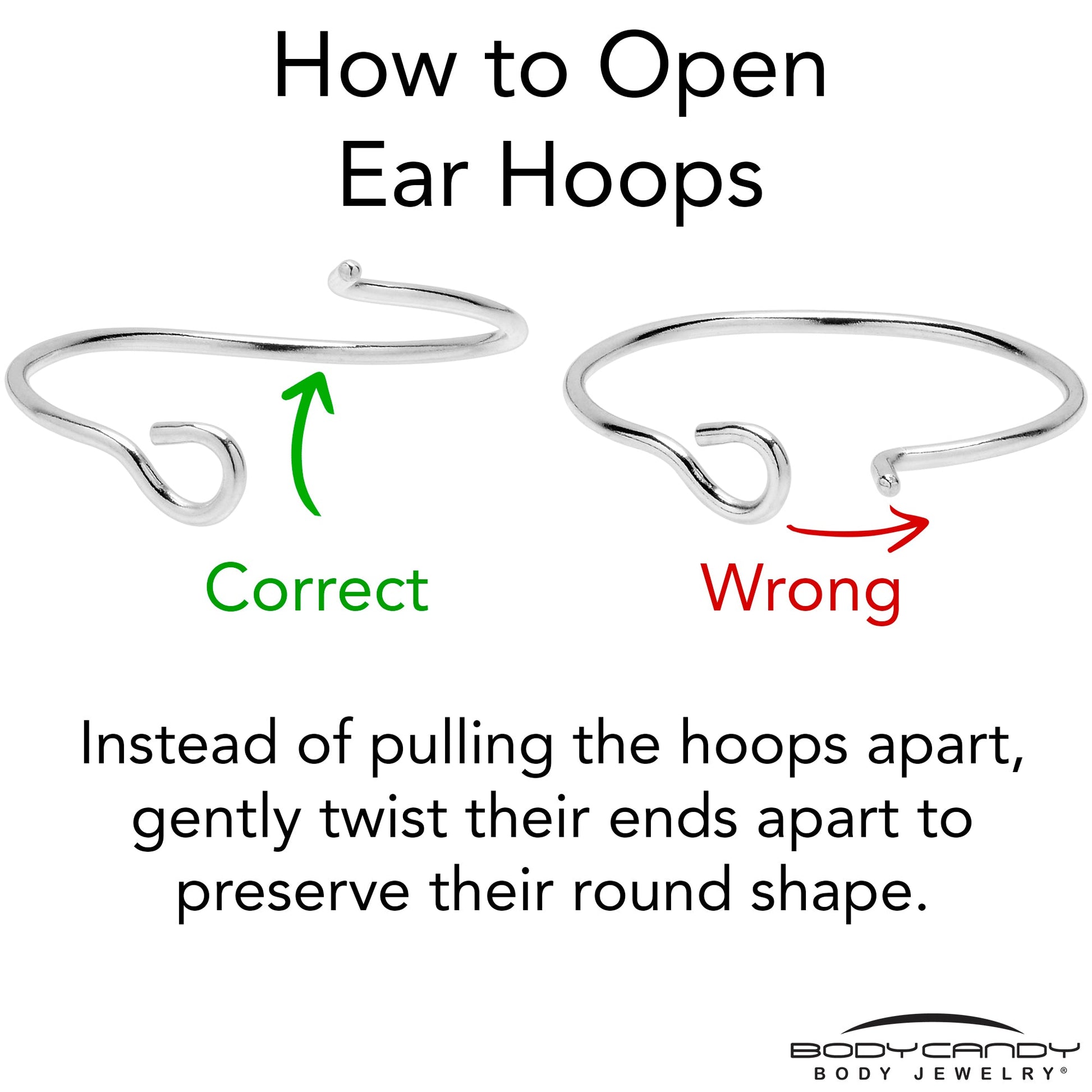 To help the hoop earrings maintain their shape gently twist the ends away from each other. Do Not Pull Apart.