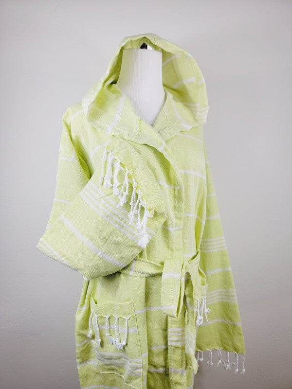 This robe is an ideal present for daily wear or as a gift for birthdays, anniversaries, weddings, Christmas, housewarmings, or graduations. Made of 100% Turkish Cotton (TURKISH TOWELS), it comes in various colors and includes a waist tie and deep pocket. This charming bathrobe is suitable for use in the bath, pool, SPA, or beach.