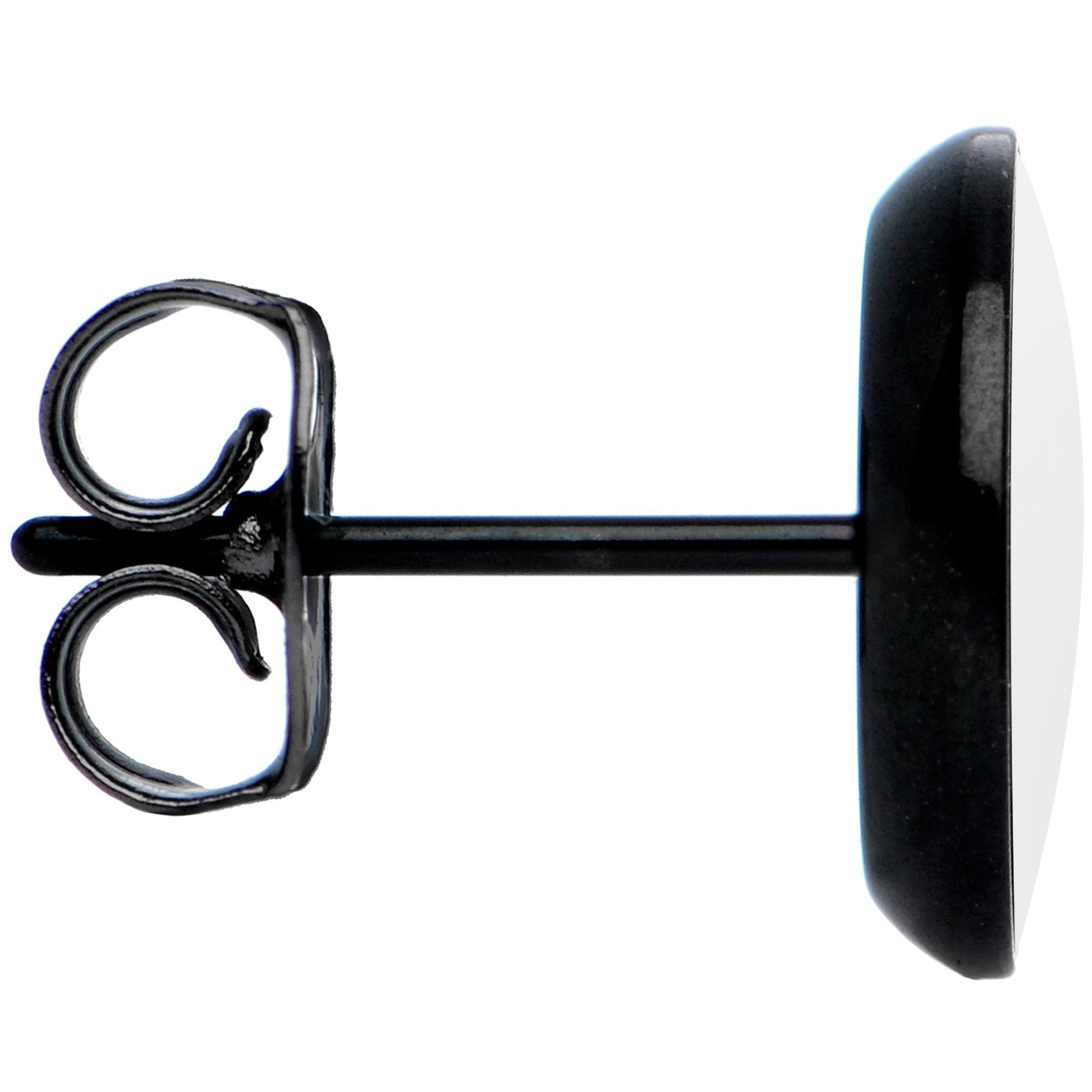 Black Anodized over 316L Surgical Grade Stainless Steel Post, Logo Inlay, Friction BackingThis jewelry item is made to order for you by our staff here in the USA.