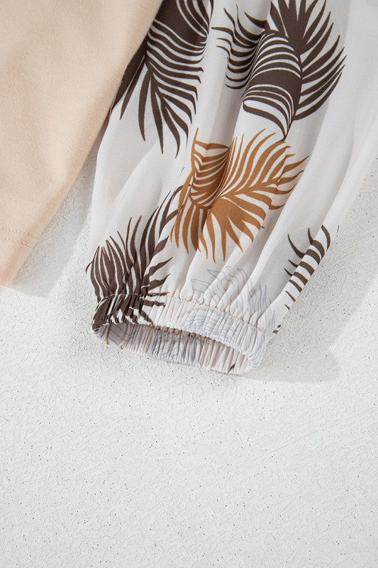 The polka dot and palm leaves puff sleeve give a brighten up look.