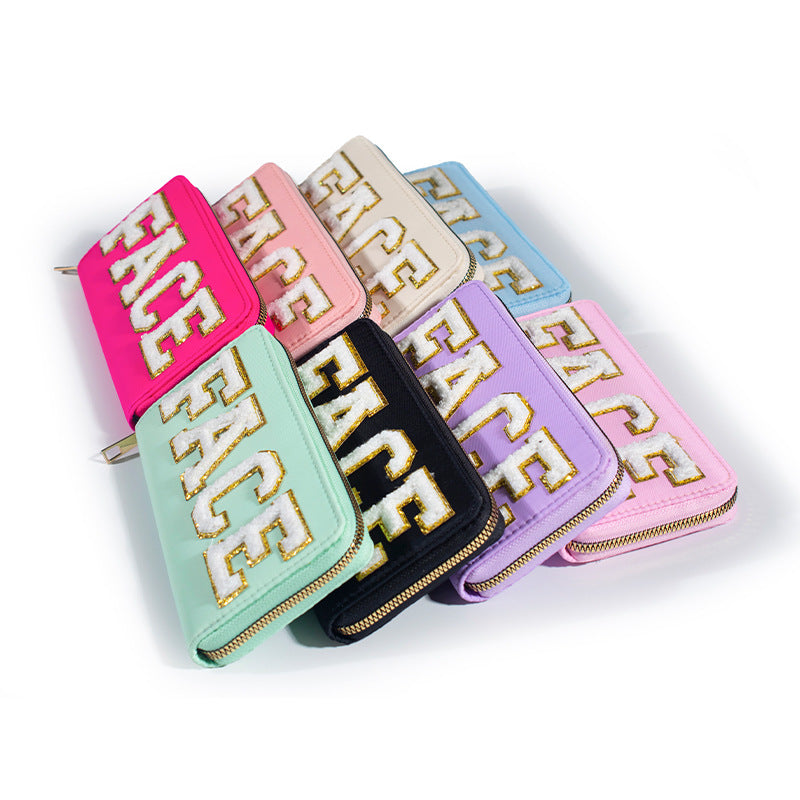 Women's alphabet embroidered wallet, long coin purse, nylon zipper ticket holder, multi-function card bag