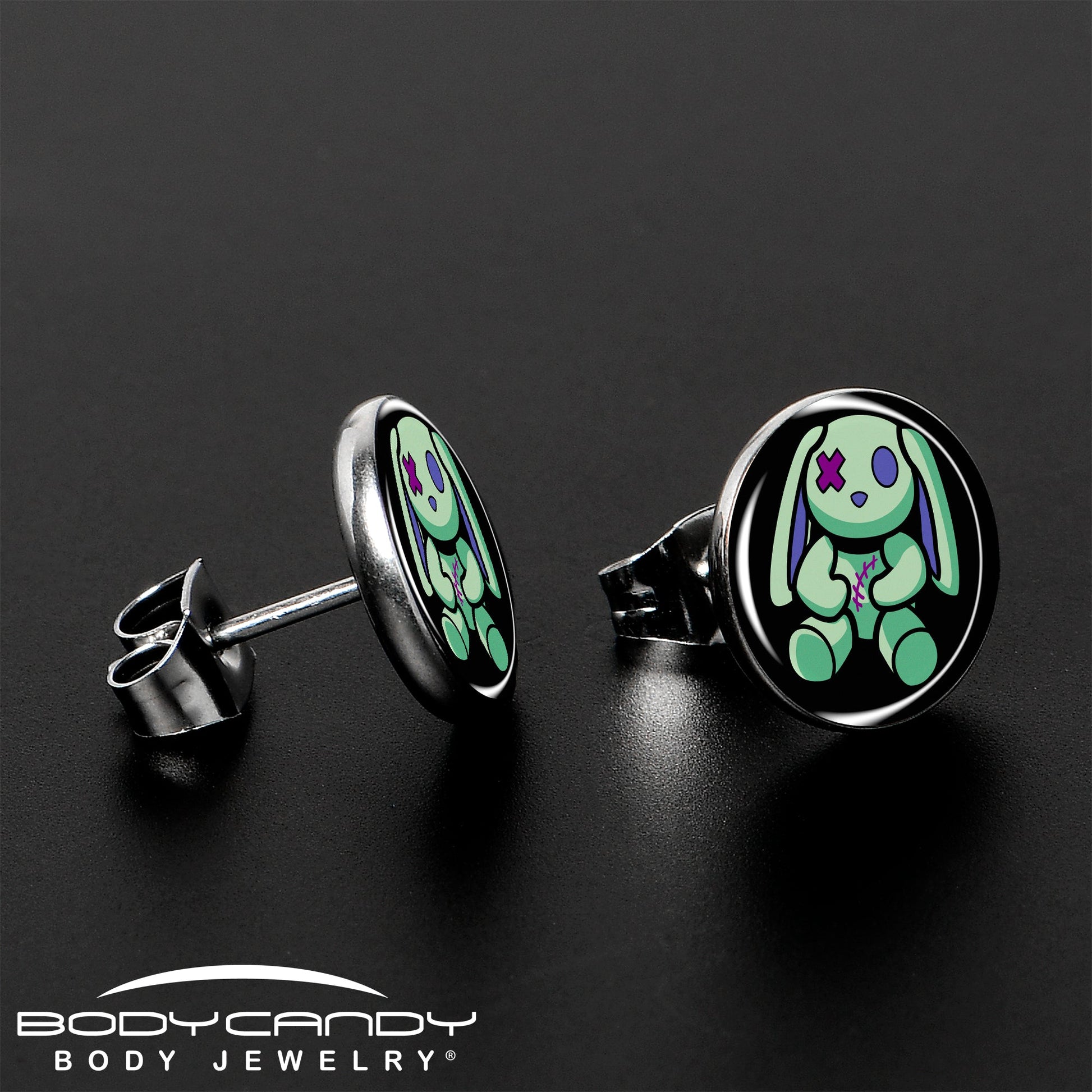 Hypoallergenic jewelry for sensitive skin.Zombie Bunny Stud Earrings
